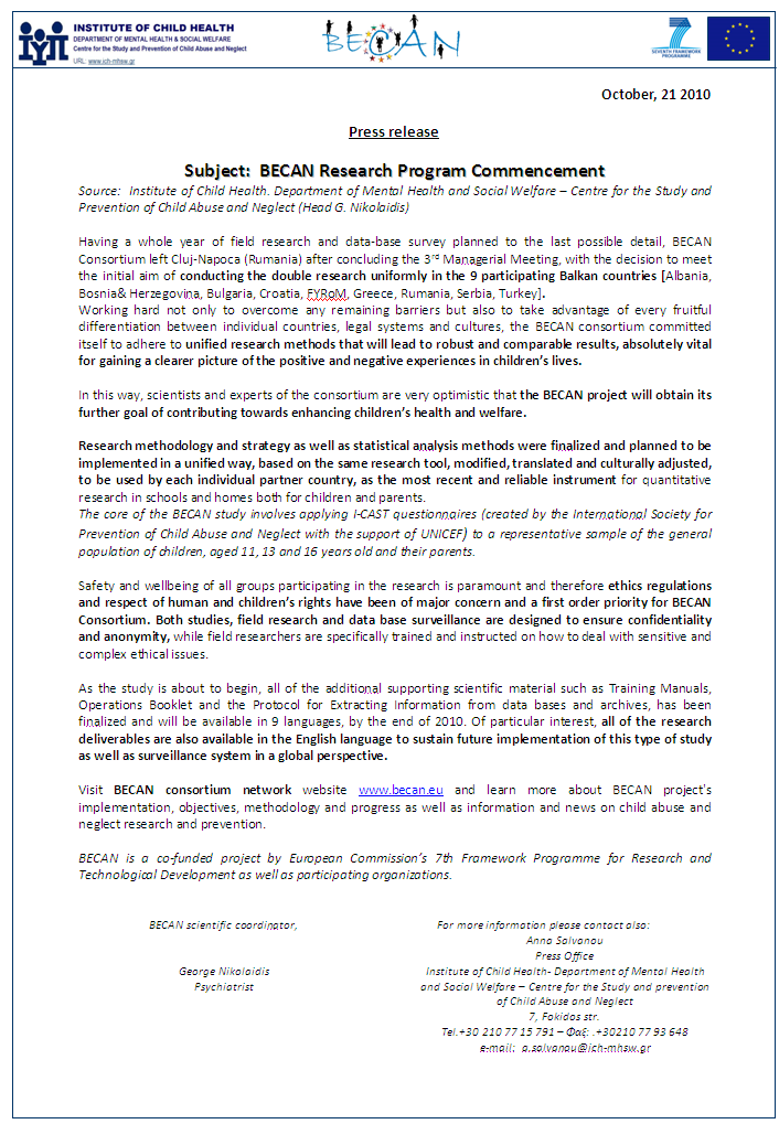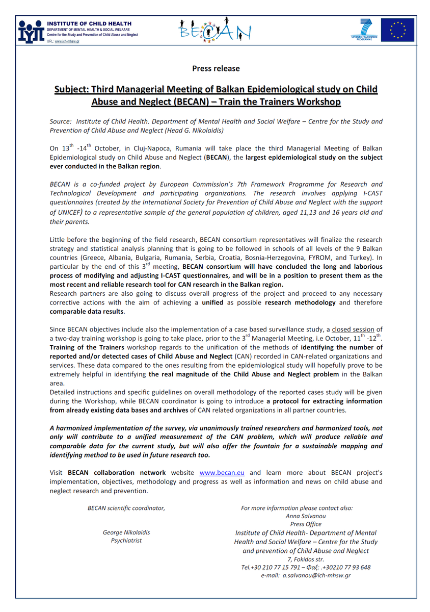 Balkan Epidemiological Study on Child Abuse & Neglect |